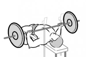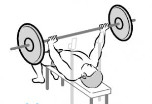 | 動作完成: 1、吸氣,雙手緩慢持鈴下放于胸前,與胸部一拳距離。 2、呼氣,胸大肌收縮,慢勻速推起杠鈴。 3、重復上述動作過程,直到完成既定次數。 4、動作過程中,髖關節和脊柱要始終保持預備姿勢。 5、動作過程中將意念集中于目標肌肉。 |